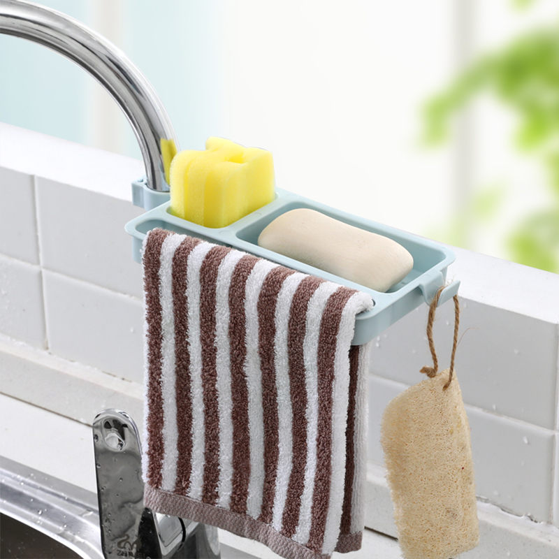 Kitchen gadgets kitchen faucet rack creative free punching sink sponge rag drain blue finishing rack