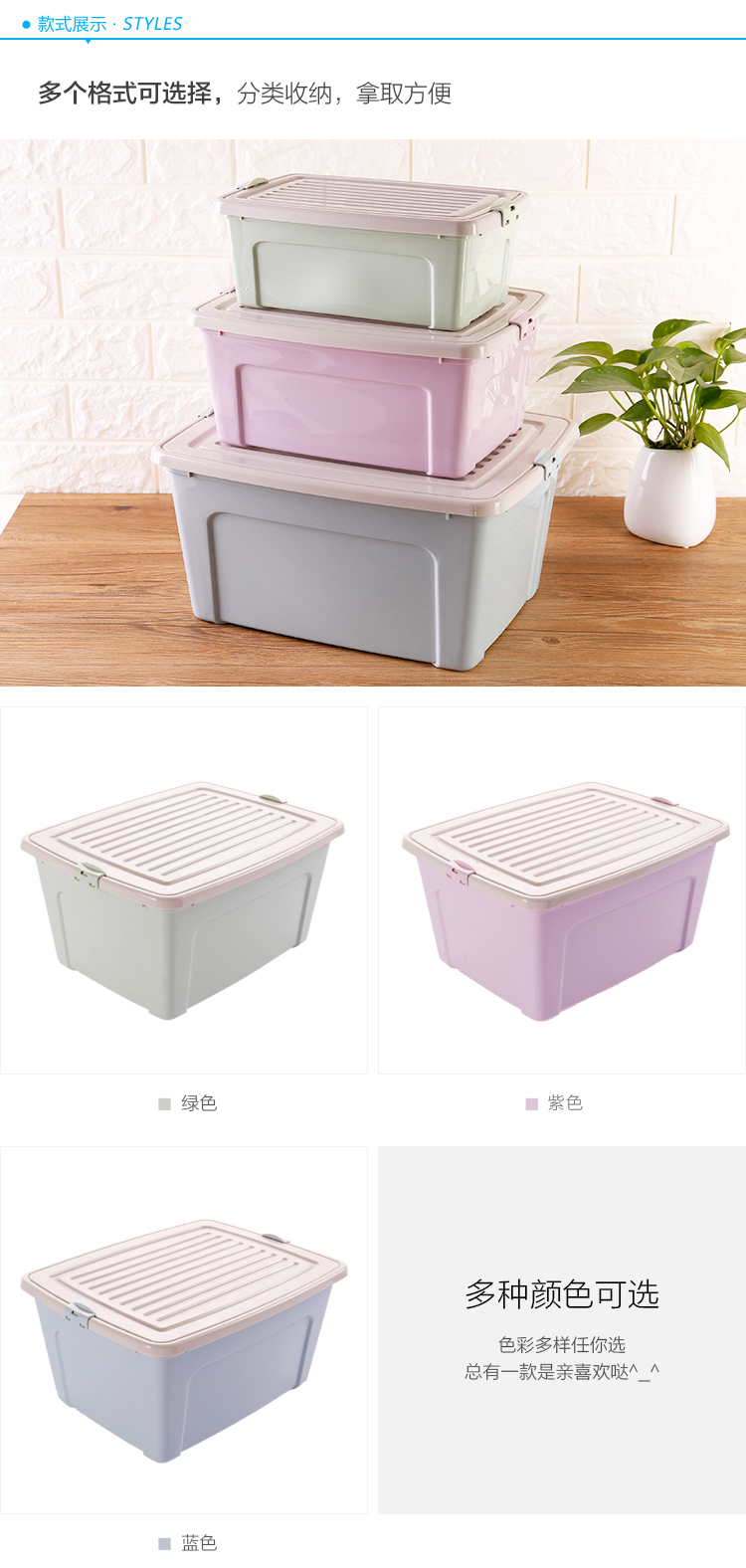 Plastic large size clothes storage box, household trumpet storage box, cover clip, turnover box, toy storage box.