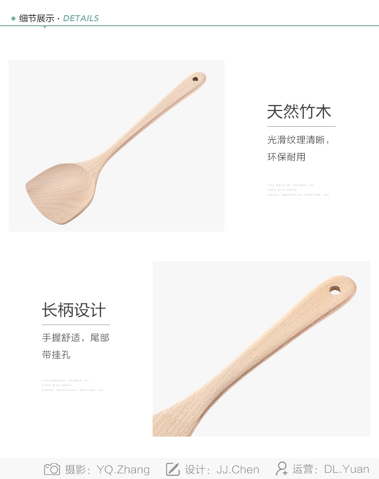 Introduction: Natural bamboo wood, smooth surface, clear texture, environmentally friendly and durable, long handle design, comfortable grip, hanging hole at the end, convenient for hanging storage. Can be used for daily cooking
