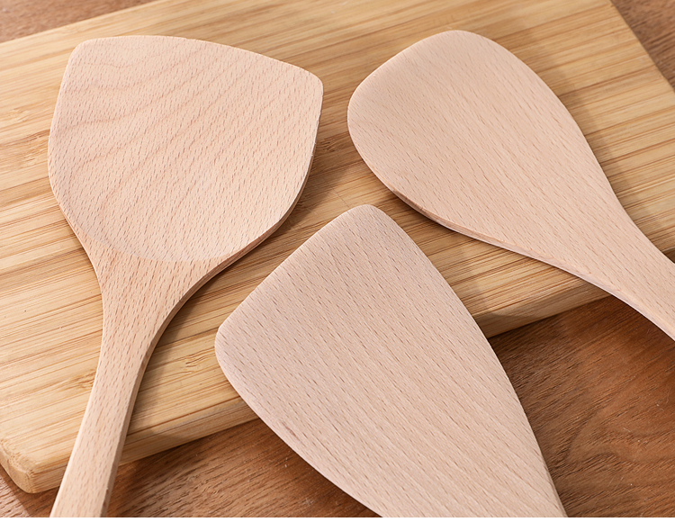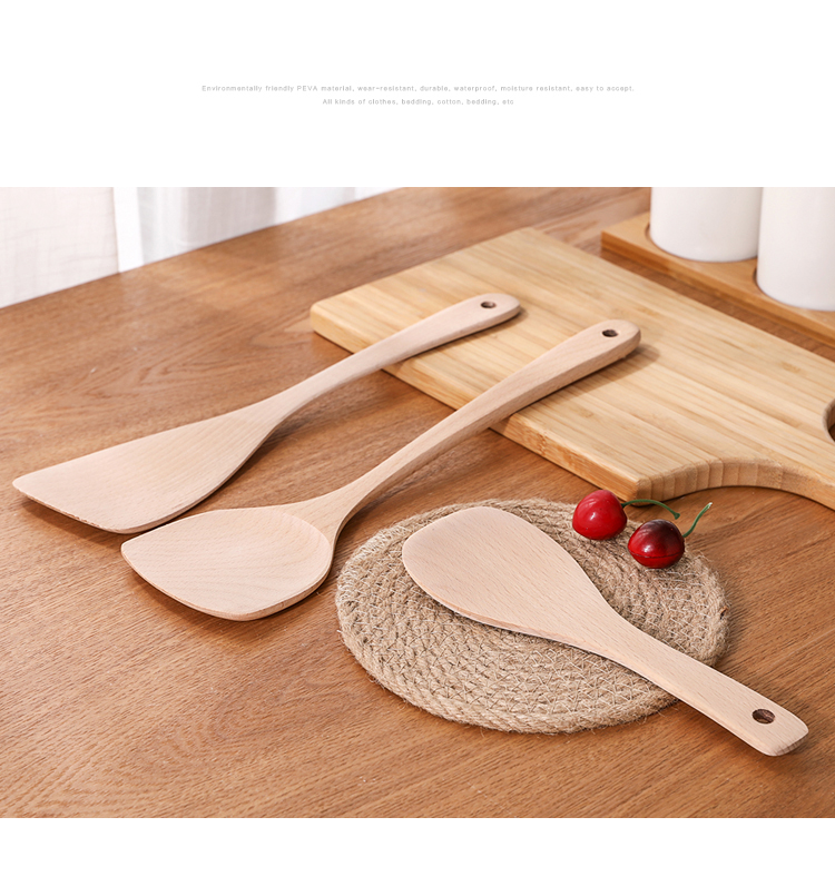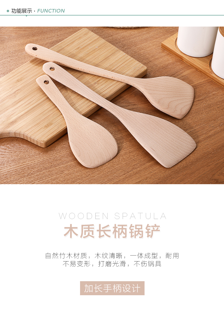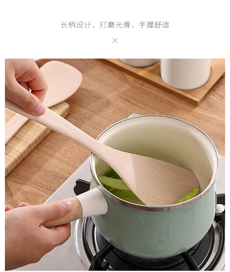 Kitchen long handle wooden spatula non-stick special household unpainted wooden kitchen high temperature resistant small