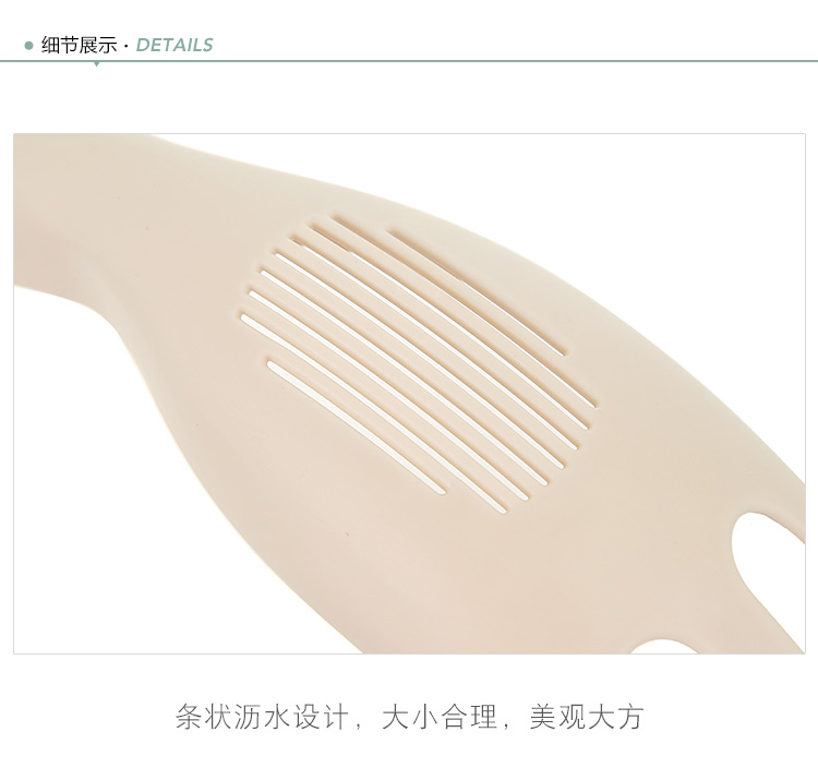 介绍: PP材质,挖齿造型,均匀细密的沥水条,沥水方便快速,双手无需沾水。