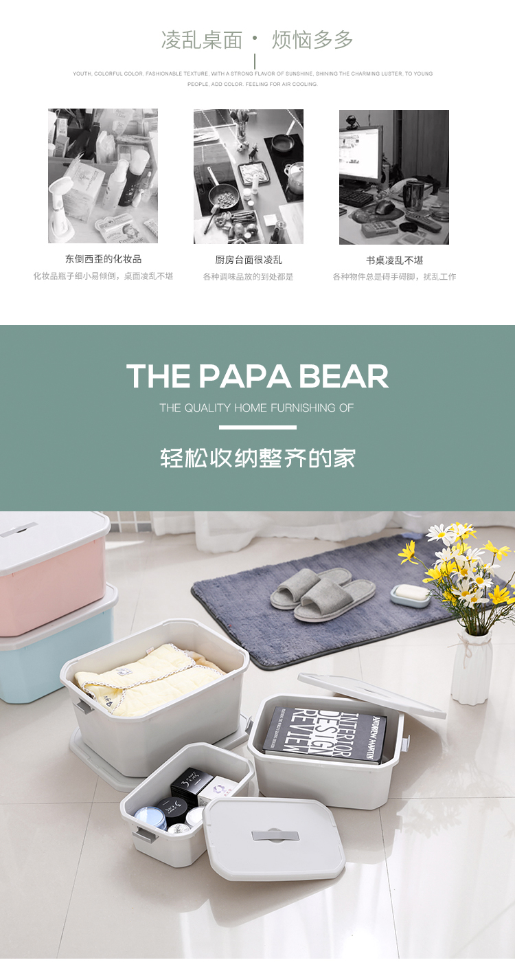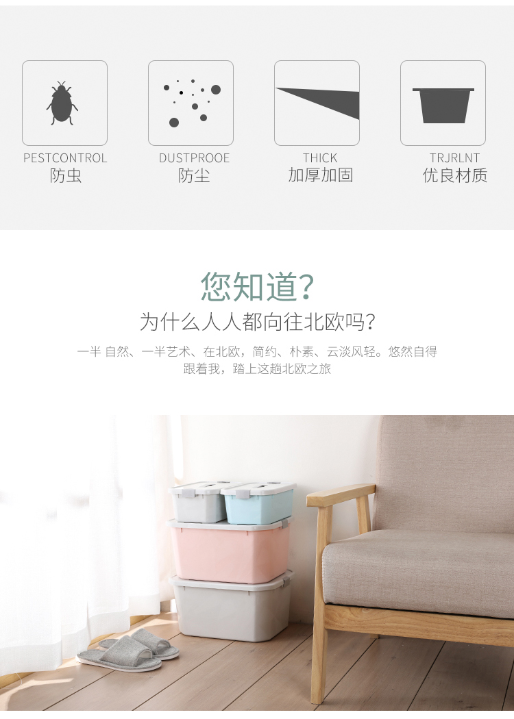 PP材质,可叠加收纳,充分利用家居空间,大中小号可选,衣服、玩具、书本都好收纳,整洁不凌乱,让家居变得干净舒适。