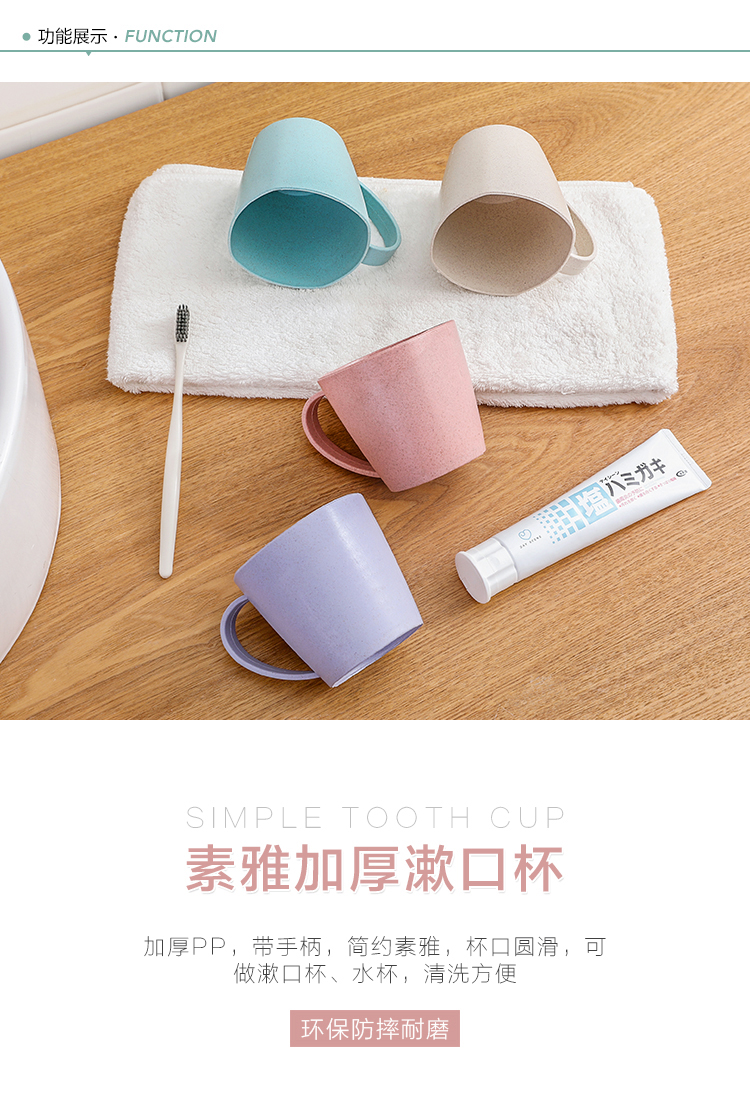 介绍: PP材质,素雅色系,简约厚实大方,美观实用,杯口圆润。可做水杯、漱口杯、牛奶杯等。